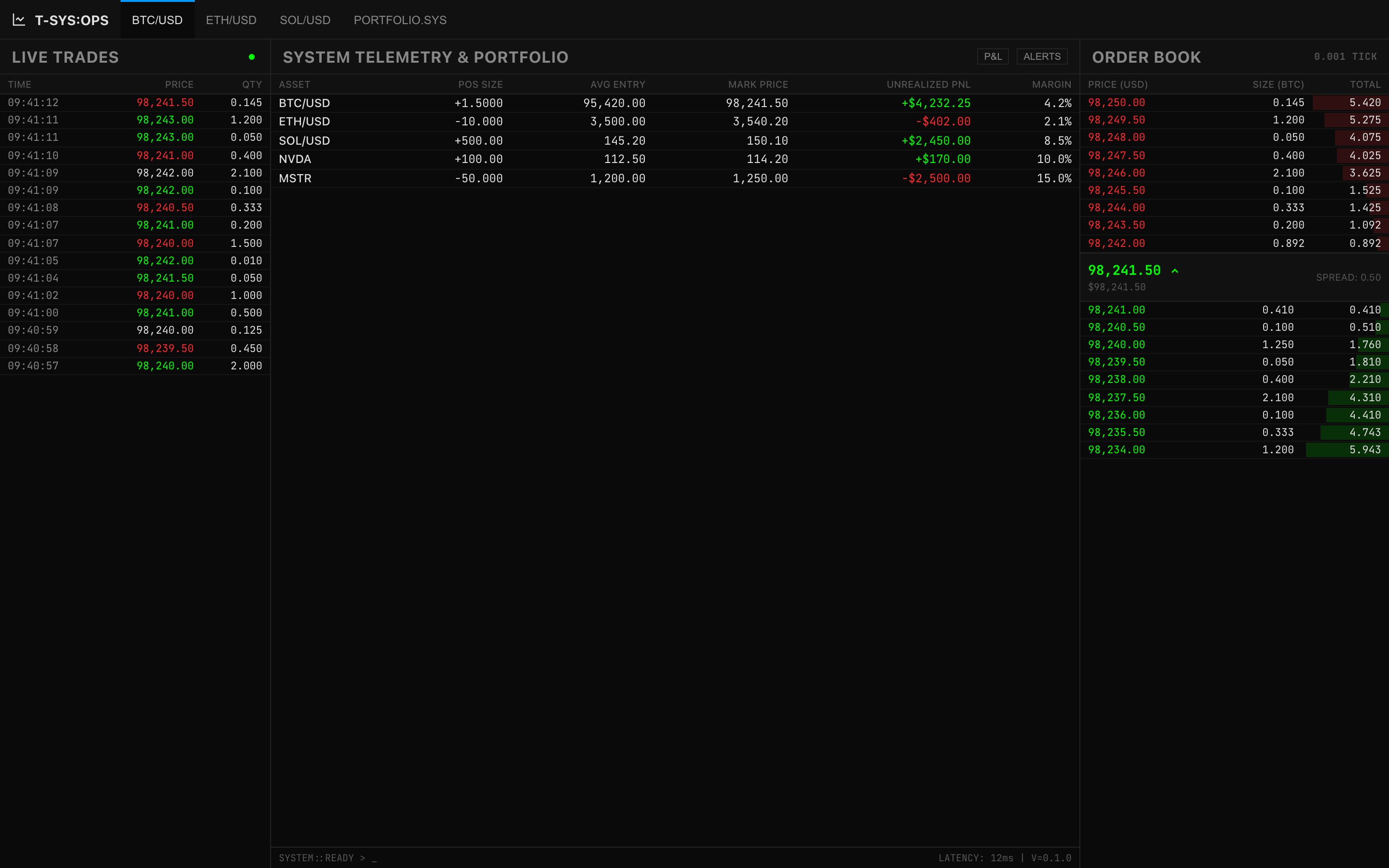 Extreme information density, zero-padding data grids, and strict monospace typography optimized for real-time monitoring.